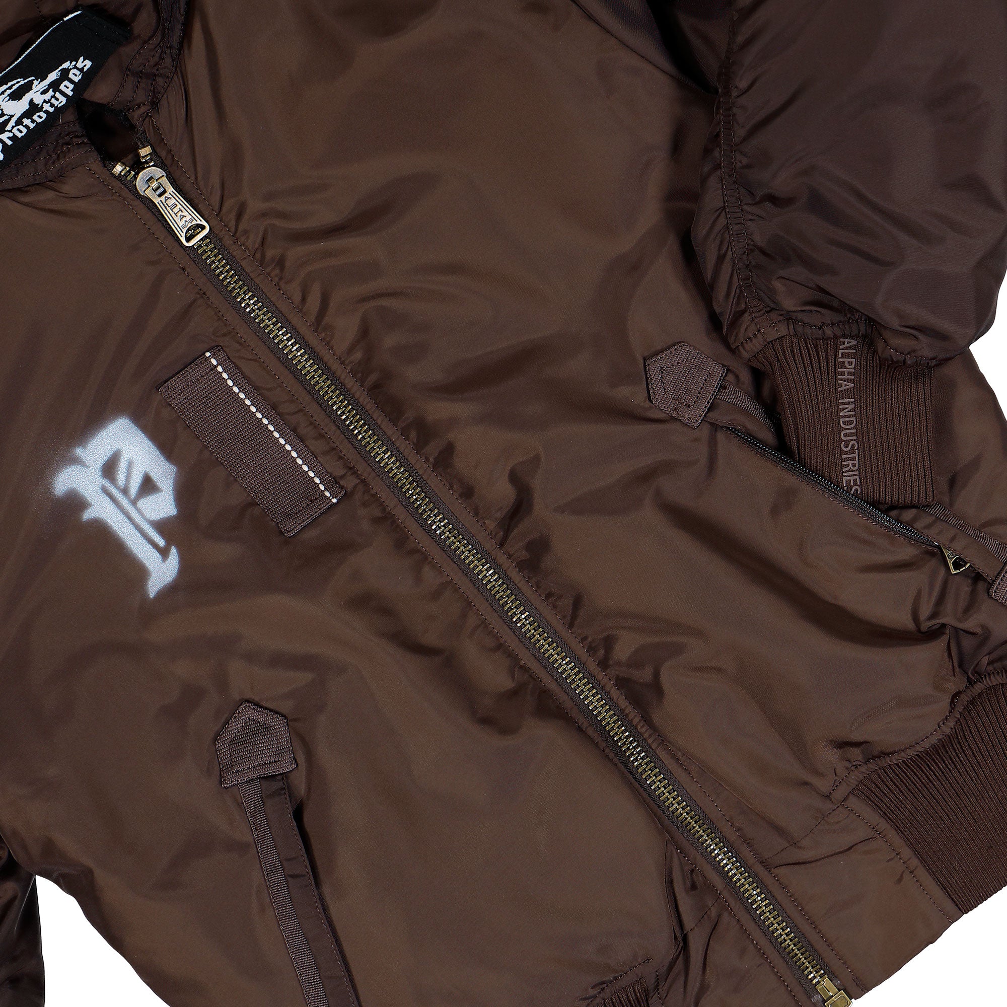 Die Alpha Industries x Prototypes Sprayed Goat Bomber präsentiert sich als charakterstarkes Modell, das traditionelle Fliegerästhetik mit zeitgenössischer Kreativität verbindet. Schon beim ersten Blick fällt die gesprühte Optik auf, die jedem Exemplar einen individuellen Ausdruck verleiht und den urbanen Charakter des Designs eindrucksvoll unterstreicht. Durch die markanten Nähte und die kräftige Struktur entsteht ein authentischer Look, der an klassische Militärsilhouetten erinnert und zugleich modernen Kunstansatz aufgreift. Innen wie außen zeigt die Bomberjacke sorgfältig gestaltete Details, die den typischen Stil der Zusammenarbeit widerspiegeln. Die Passform wirkt angenehm lässig und ermöglicht komfortables Tragen im Alltag. Ergänzende Elemente wie der ikonische Utility Pocket und das charakteristische Branding runden das Gesamtbild ab und verleihen der Jacke eine klare Wiedererkennbarkeit. Kombiniert mit robusten Reißverschlüssen und einer stabilen Verarbeitung entsteht ein ausgewogenes Zusammenspiel aus Funktion und Design, das sowohl für kühle Tage als auch für ausdrucksstarke Outfits geeignet ist. Die Jacke verbindet künstlerische Inspiration mit zeitloser Formensprache und bietet eine gelungene Mischung aus experimenteller Optik und klassischem Bomberstil.