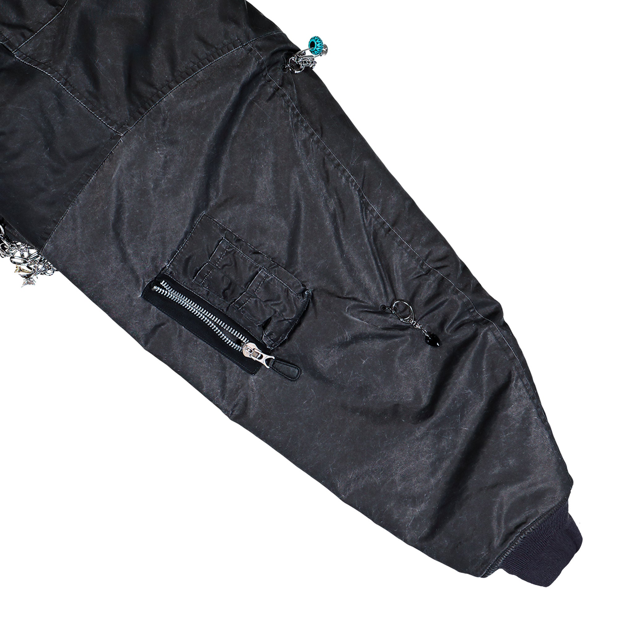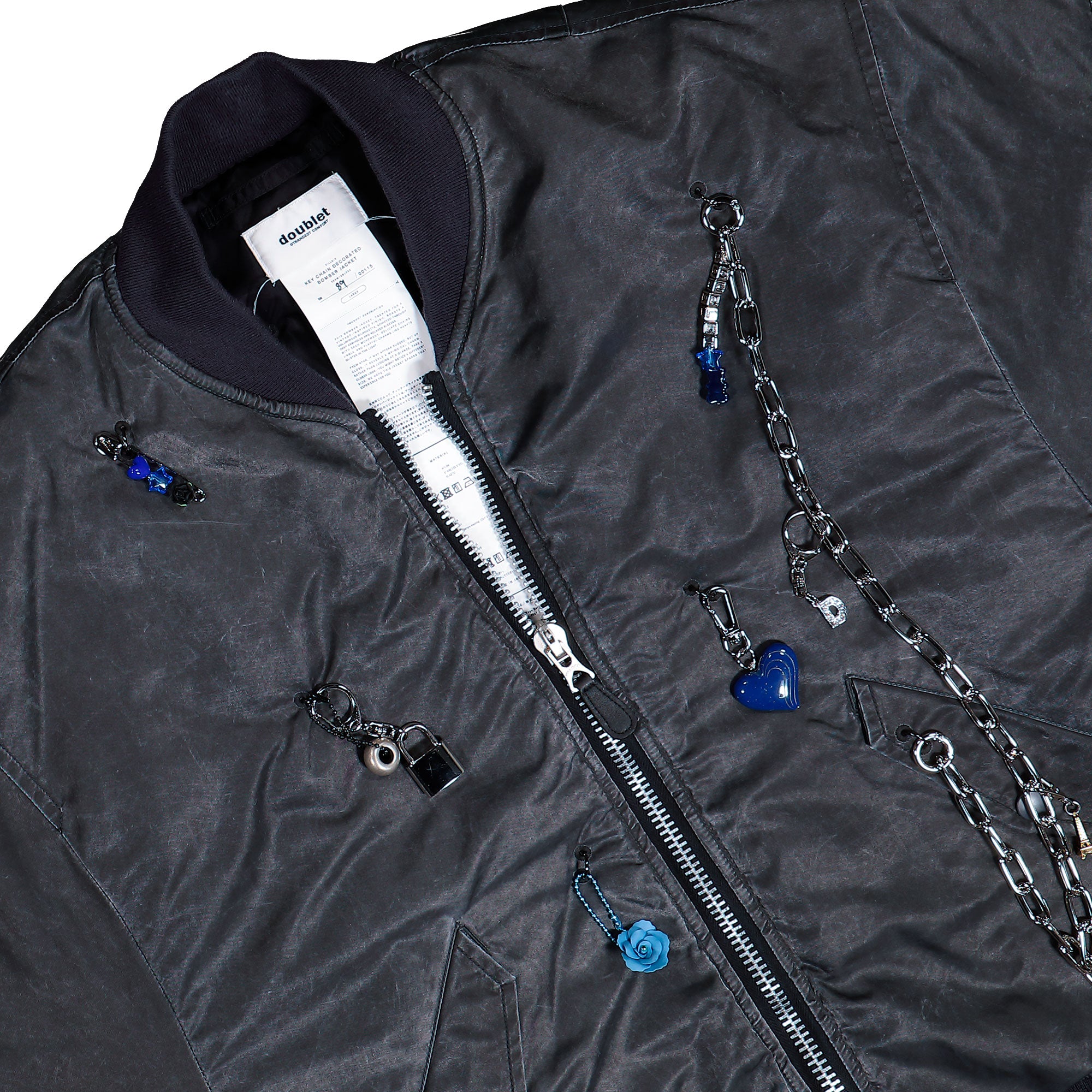 Die Doublet Key Chain Decorated Bomber Jacket präsentiert sich als außergewöhnliches Designstück, das kunstvolle Details mit einer markanten Silhouette verbindet. Schon beim ersten Eindruck fällt die Vielzahl an dekorativen Anhängern auf, die über die gesamte Oberfläche verteilt sind und dem Modell einen unverwechselbaren Charakter verleihen. Die Jacke erzeugt durch ihre strukturierte Form eine kraftvolle Präsenz und wirkt zugleich durchdacht arrangiert. Jede Kette und jedes Ornament wurde präzise platziert und schafft eine dynamische Optik, die den typischen Stil des Labels eindrucksvoll widerspiegelt. Beim Tragen entsteht ein spannender Kontrast zwischen klassischem Bomberschnitt und experimentellen Akzenten, wodurch die Jacke sowohl als modisches Statement als auch als besonderes Sammlerstück überzeugt. Im Inneren findet sich ein nummeriertes Label, das die exklusive Limitierung auf 115 Exemplare bestätigt und den individuellen Wert jeder einzelnen Jacke unterstreicht. Durch die Kombination aus kreativer Verzierung und hochwertiger Verarbeitung entsteht ein Kleidungsstück, das Authentizität ausstrahlt und den persönlichen Stil wirkungsvoll betont. Die Doublet Key Chain Decorated Bomber Jacket eignet sich ideal für alle, die außergewöhnliche Designs schätzen und Mode als Ausdruck ihrer eigenen Haltung verstehen.