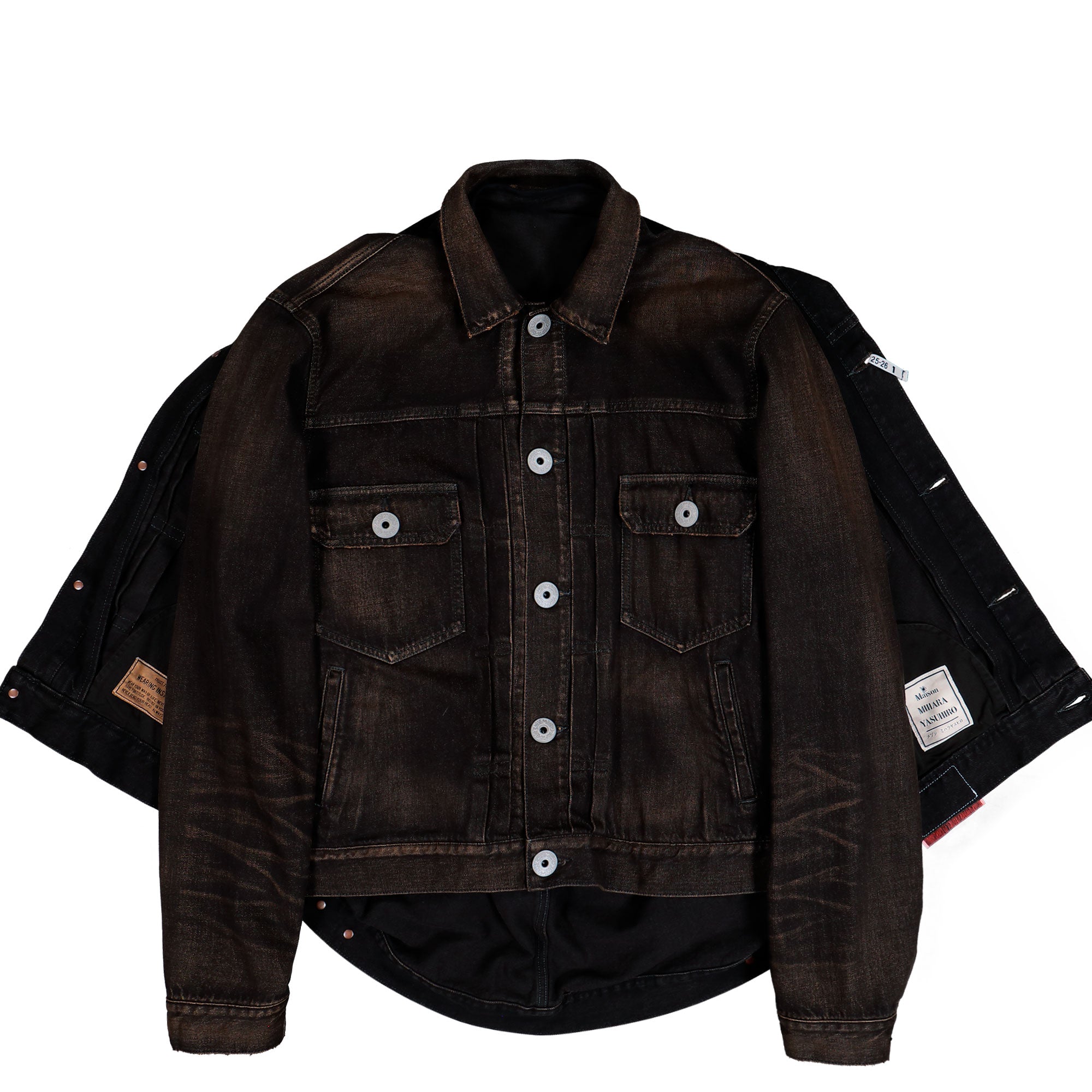 Maison Mihara Yasuhiro präsentiert mit der Front Layered Denim Jacket eine moderne Interpretation klassischer Workwear, die durch ihren markanten Lagenaufbau sofort ins Auge fällt. Diese Jacke verbindet eine leger geschnittene Silhouette mit dem typischen progressiven Designansatz des Labels und erzeugt dadurch einen spannenden Mix aus urbaner Lässigkeit und avantgardischem Ausdruck. Der Vorderbereich wirkt durch die doppelte Lage besonders plastisch und verleiht dem Denim Look zusätzliche Tiefe, während dezente Used Effekte dem Modell einen authentischen Charakter geben. Gleichzeitig sorgt die strukturierte Verarbeitung für ein angenehmes Tragegefühl und eine klare Form, die sich vielseitig kombinieren lässt. Ob zu lockeren Hosen oder schmalen Silhouetten getragen, entsteht ein ausdrucksstarkes Bild, das die künstlerische Handschrift der Marke unterstreicht. Maison Mihara Yasuhiro bleibt seiner Vision treu und verbindet vertraute Elemente mit innovativen Details, wodurch diese Jacke zum idealen Begleiter für alle wird, die ihren Stil mit Individualität und moderner Raffinesse prägen möchten.