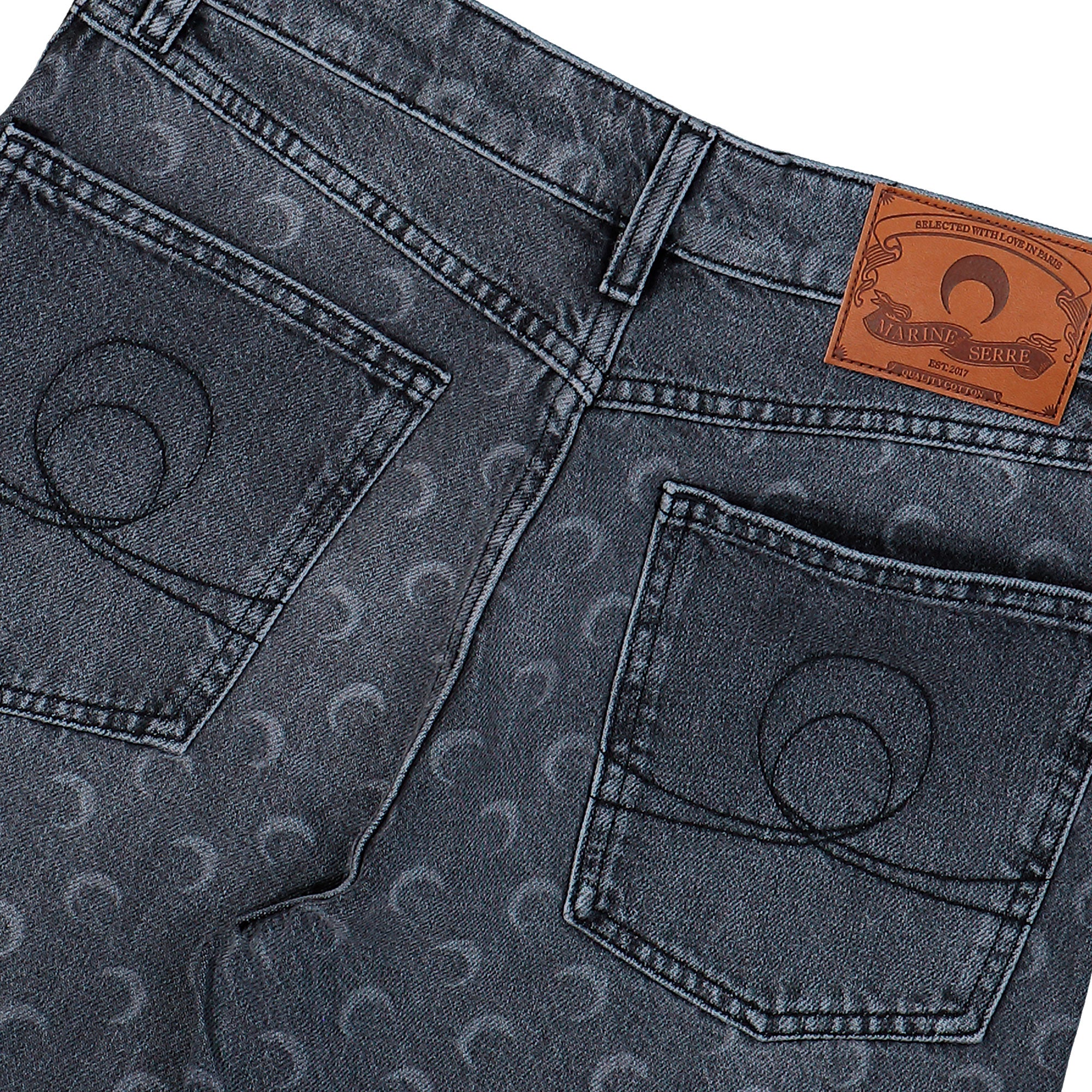 Die Marine Serre Moon Laser Denim Baggy Jeans verbindet markantes Design mit einem modernen Look und präsentiert sich als Ausdruck eines progressiven Modeverständnisses. Durch die charakteristische Moon Laser Optik entsteht ein spannender Kontrast, der dem dunklen Denim zusätzliche Tiefe verleiht und dem Gesamtbild eine unverwechselbare Note gibt. Die leicht weitere Form sorgt für ein entspanntes Tragegefühl und unterstreicht zugleich den lässigen Charakter dieser Jeans, während die aufwendig gestalteten Details den innovativen Anspruch der Marke klar widerspiegeln. Marine Serre setzt auf eine Ästhetik, die traditionelle Elemente neu interpretiert und mit futuristischen Einflüssen verbindet, was sich besonders in der besonderen Oberflächenstruktur dieser Jeans zeigt. Die klare Linienführung ergänzt den urbanen Stil und lässt vielfältige Kombinationen mit schlichten Oberteilen oder markanten Accessoires zu. Durch die präzise Platzierung des ikonischen Mondmotivs entsteht ein harmonisches Zusammenspiel aus moderner Grafik und klassischer Denim Kultur, das die Hose zu einem markanten Bestandteil zeitgenössischer Outfits macht. Mit ihrem unverkennbaren Charakter bietet diese Jeans die Möglichkeit, einen individuellen Stil zu betonen und gleichzeitig die kreative Handschrift von Marine Serre eindrucksvoll zu zeigen.