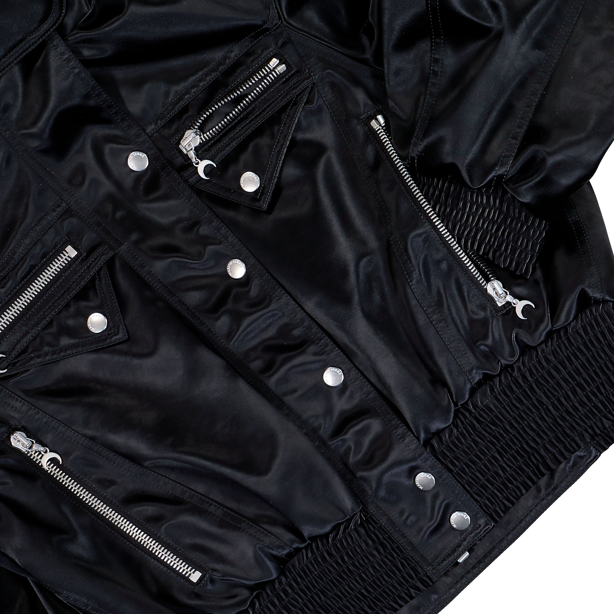 Die Marine Serre Satin Nylon Bomber Jacket präsentiert sich als moderne Interpretation eines sportlich eleganten Klassikers und zieht mit ihrer charakteristischen Form sofort Aufmerksamkeit auf sich. Dieses Modell kombiniert eine markante Silhouette mit einem luxuriös schimmernden Finish, das den zeitgenössischen Look der Marke eindrucksvoll unterstreicht. Durch die weich fallende Struktur erhält die Jacke eine dynamische Ausstrahlung, während die gerippten Elemente an Kragen und Ärmelenden für ein ausgewogenes Verhältnis zwischen Komfort und Design sorgen. Auffällige Details wie die geschwungenen Linienführungen und die subtil eingearbeiteten Signature Akzente verleihen dem Stück eine besondere Tiefe und lassen es sowohl lässig als auch stilvoll wirken. Ob zu eleganten Hosen oder entspannten Alltagsoutfits kombiniert, dieses Modell bietet vielfältige Stylingoptionen und ergänzt mühelos unterschiedliche Looks. Marine Serre verbindet in dieser Bomber Jacket moderne Ästhetik mit funktionaler Leichtigkeit und schafft ein Kleidungsstück, das zugleich zeitlos als auch progressiv wirkt. Die Jacke zeigt sich als ideale Wahl für alle, die Wert auf besondere Designs legen und ihre Garderobe um ein vielseitiges Statement Piece erweitern möchten.