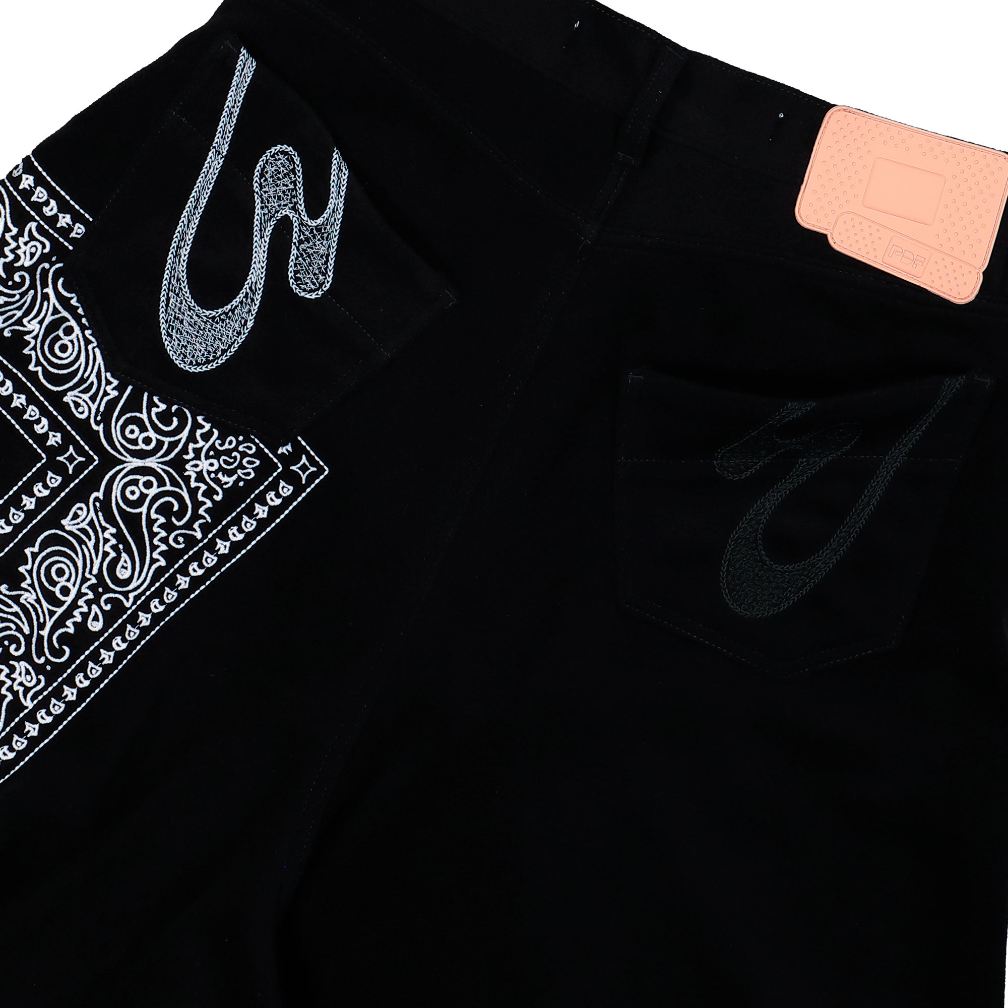 Die Tokyo Calling Pants ist ein Meisterwerk des dekonstruierten Designs, das italienische Denim-Handwerkskunst mit der Ästhetik der Streetwear aus Tokio verbindet. Die auffällige Hose zeichnet sich durch eine charakteristische, mehrschichtige Silhouette aus, die den Eindruck von gerade geschnittener Denim vermittelt, die über einem lebhaften, kontrastierenden Stück getragen wird - mit einem Bandana-Muster als Rock-Detail an der Taille. Diese dreidimensionale Konstruktion sorgt für einen starken visuellen Eindruck und bewahrt dabei die strukturelle Integrität, die man von hochwertigem Denim erwartet. Ein unverzichtbares Kleidungsstück für alle, die nach unkonventioneller Schneiderkunst suchen, die traditionelle Silhouetten in Frage stellt und innovative Designs feiert.