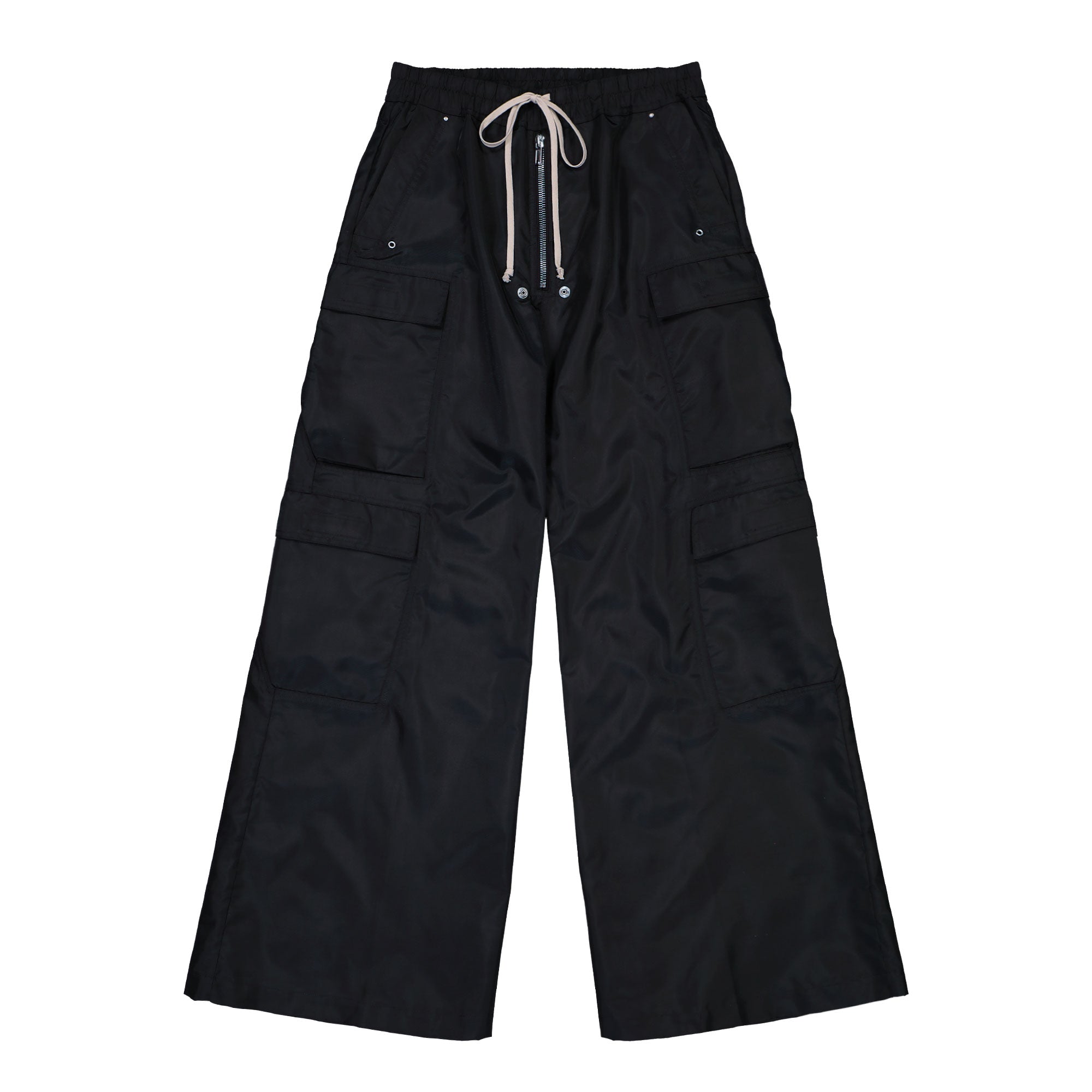 Die Rick Owens Double Cargo Jumbo Belas präsentieren sich als ausdrucksstarke Hose, die durch ihre charakteristische Silhouette und funktionale Gestaltung Aufmerksamkeit erzeugt. Das Modell verbindet markentypische Volumen mit einer modernen Interpretation klassischer Cargo Elemente und schafft dadurch einen Look, der sowohl im Alltag als auch in urban inspirierten Styles seinen Platz findet. Auffällig sind die großzügig platzierten Taschen, die dem Design zusätzliche Struktur verleihen und zugleich praktischen Nutzen bieten. Die weiche und dennoch robuste Materialqualität sorgt für ein angenehmes Tragegefühl, während der fließende Fall des Stoffes den charakteristischen Bewegungsablauf der Silhouette unterstützt. Der hohe Bund und die weit geschnittenen Beine formen eine markante Proportion, die dem Modell eine unverwechselbare Präsenz gibt. Die Double Cargo Jumbo Belas zeigen eindrucksvoll, wie Rick Owens es schafft traditionelle Formen neu zu interpretieren und mit modernen Einflüssen zu verbinden. Dadurch entsteht eine Hose, die trotz ihres minimalistischen Farbtons ein starkes stilistisches Statement setzt und verschiedene Looks souverän ergänzt.