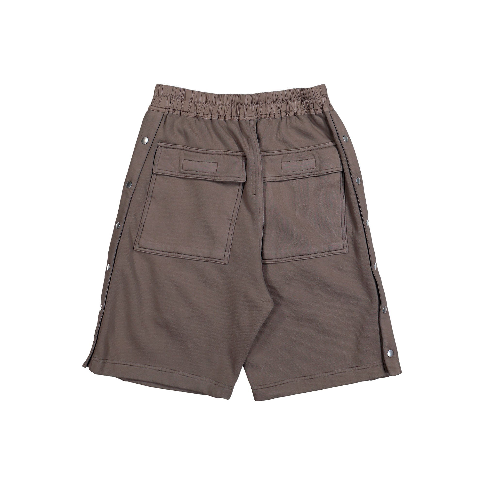 Die Rick Owens Wide Pusher Shorts DU01F4343 F 34 in Dust präsentieren sich mit einer kraftvollen, reduzierten Ästhetik und verbinden funktionale Details mit einer markanten Silhouette. Der weit geschnittene Fit mit verlängerter Beinpartie erzeugt eine fließende Linie, während der elastische Bund mit kontrastierender Kordel in hellem Grau individuellen Halt bietet. Der Farbton Dust zeigt sich als mittleres, erdig-warmes Braun mit leicht grauem Einschlag, das je nach Lichteinfall zwischen Taupe und verwaschenem Khaki changiert und dem Design eine subtile Tiefe verleiht. Seitlich verlaufende Druckknopfleisten in silberfarbener Optik setzen technische Akzente und ermöglichen variable Styling-Optionen. Aufgesetzte Gesäßtaschen mit klarer Nahtführung unterstreichen den utilitären Charakter, während die hochwertige Baumwollqualität für eine angenehme, strukturierte Haptik sorgt. In Kombination mit Oversized-Oberteilen oder minimalistischen Layering-Pieces entsteht ein progressiver Look mit klarer Formsprache. Die Rick Owens Shorts stehen für avantgardistische Herrenmode, die Komfort, Volumen und architektonische Linienführung in Einklang bringt.