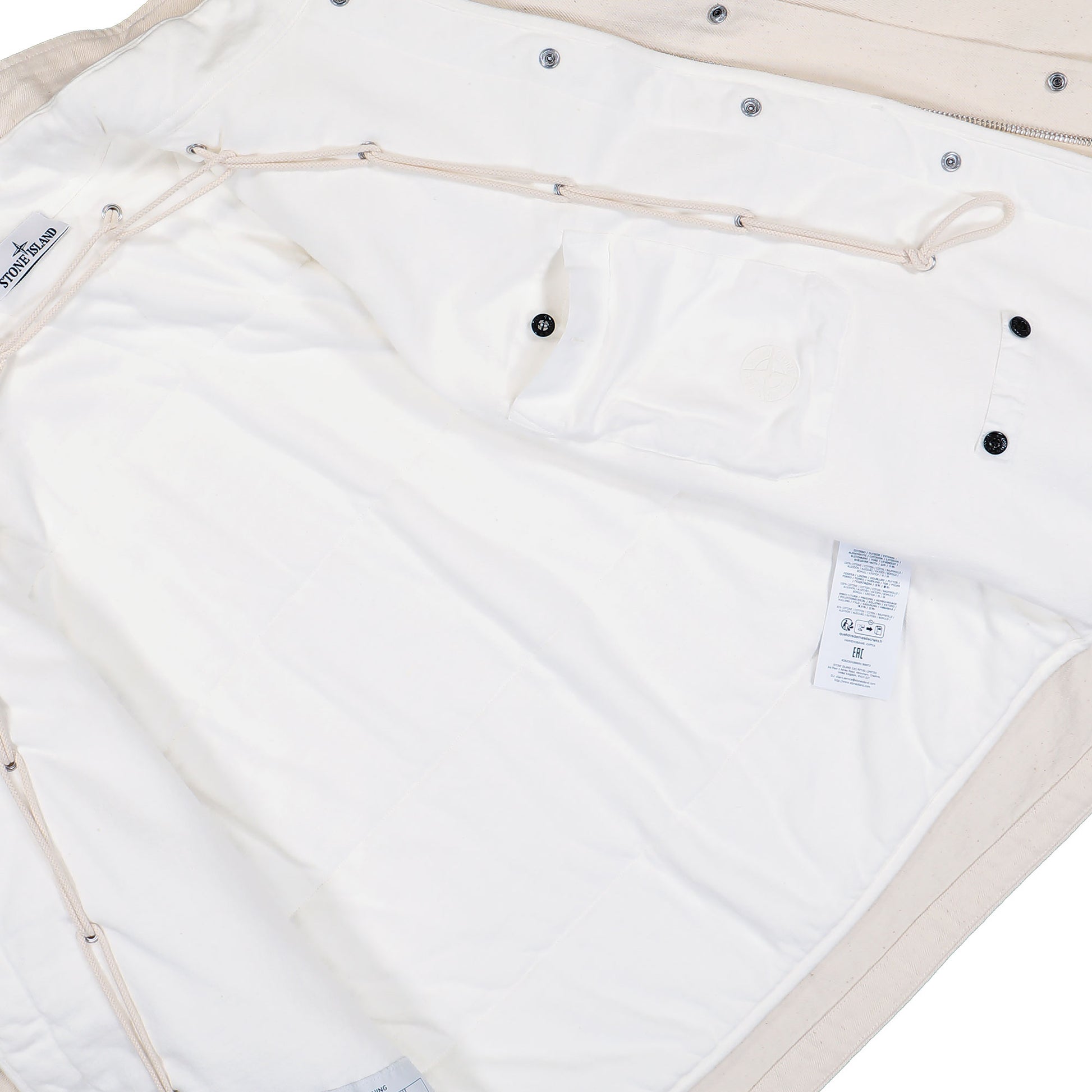 Diese Jacke von Stone Island kombiniert nachhaltige Innovation mit einem markanten, funktionalen Design. Gefertigt ist sie aus einem hochwertigen Baumwollmix, der zu 60 Prozent aus recycelter Baumwolle besteht. Das Material stammt aus einem anspruchsvollen Recyclingverfahren, bei dem Stoffreste aus der eigenen Produktion aufbereitet und zu neuen Mischgarnen verarbeitet werden. Diese recycelten Fasern verleihen dem Parka nicht nur seinen einzigartigen Charakter, sondern machen ihn auch zu einem Ausdruck verantwortungsvoller Mode. Die ungebleichte Oberfläche bringt natürliche Unregelmäßigkeiten mit sich, die typisch für Rohbaumwolle sind und jedem Stück eine individuelle Note verleihen. Das Modell ist gewaschen, was der Jacke eine zusätzliche Tiefe und einen leicht eingetragenen Look verleiht. Ausgestattet mit einer herausnehmbaren Innenweste lässt sich das Tragegefühl flexibel anpassen. Verstärkte Ellbogenpartien sorgen für Langlebigkeit im Alltag und setzen zugleich funktionale Akzente. Der kurze Schnitt unterstreicht die moderne Silhouette, während das dezente Ivory-Finish vielseitige Kombinationsmöglichkeiten eröffnet. Diese Jacke verbindet zukunftsorientiertes Textilhandwerk mit einer markanten Ästhetik, die sowohl im urbanen Umfeld als auch bei wechselhaftem Wetter überzeugt.