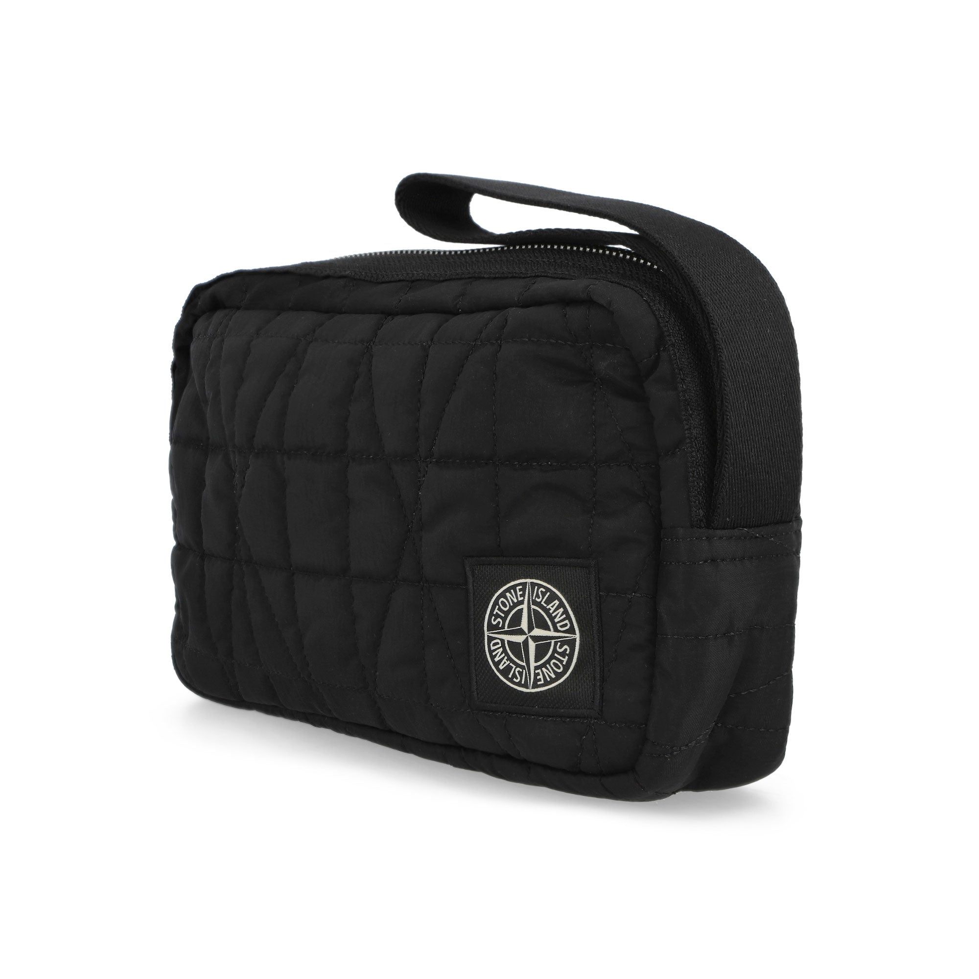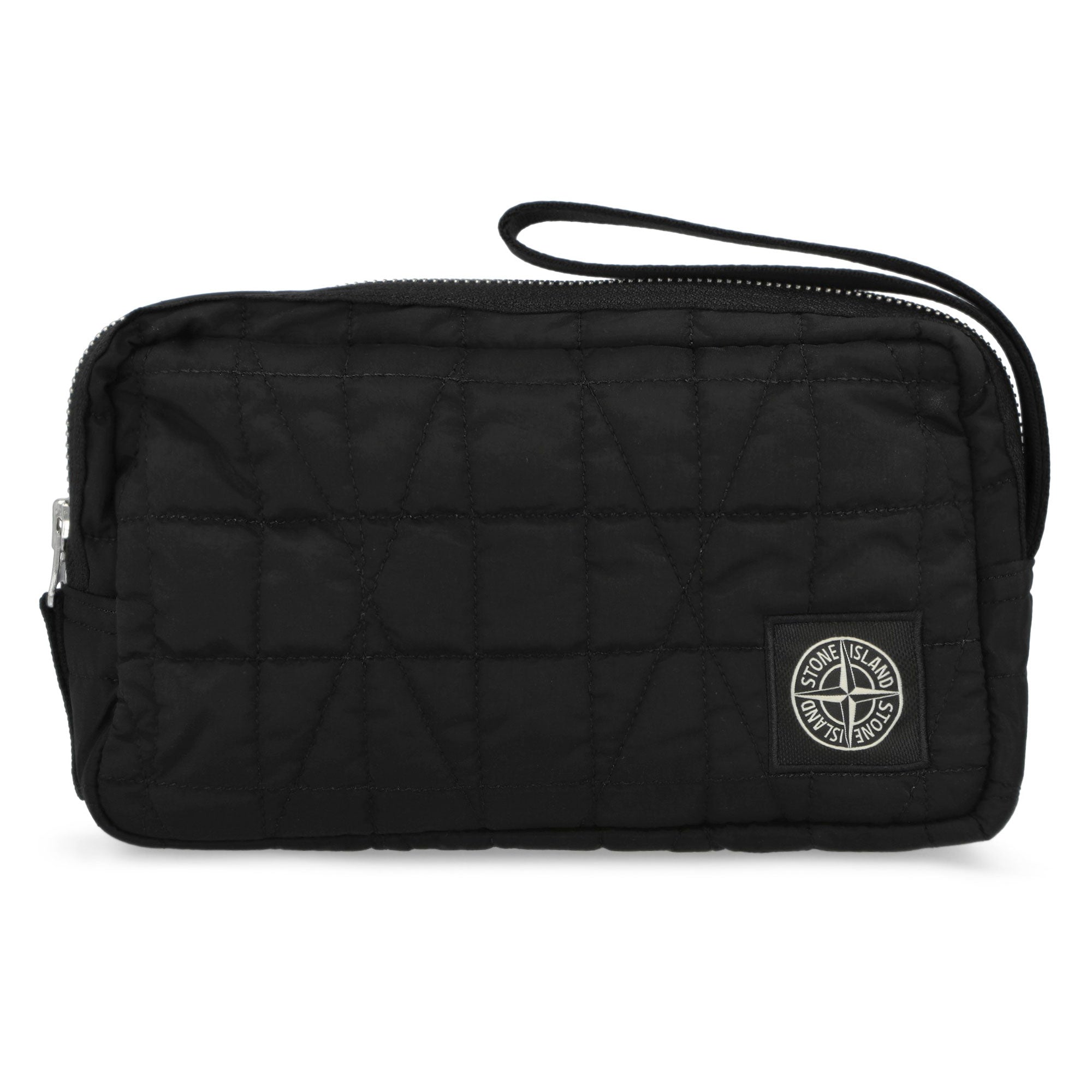 Die Stone Island Wrist Pouch präsentiert sich in einem hochwertigen, schimmernden Nylon-Metal-Gewebe, das aus recycelten ECONYL®-Garnen gefertigt wird und durch eine spezielle Polyurethanbeschichtung zusätzlichen Schutz erhält. Dieses Material verleiht der Tasche eine besondere irisierende Optik, die je nach Lichteinfall unterschiedliche Nuancen zeigt und so einen unverwechselbaren Look schafft. Mit ihrem kompakten Format und einem durchdachten Innenleben bietet die Wrist Pouch eine praktische Lösung für den Alltag, denn gleich vier Innentaschen sorgen für optimale Organisation und machen das Verstauen von Wertsachen oder Alltagsgegenständen besonders übersichtlich. Ergänzt wird das Design durch ein rückseitiges Fach mit Druckknopfverschluss, das schnellen Zugriff ermöglicht, während der robuste Nylonriemen die Tasche bequem am Handgelenk fixiert. Die innovative Verarbeitung des regenerierten Garns basiert auf einem komplexen Recyclingprozess, bei dem verbrauchte Nylonmaterialien aufbereitet werden, um ein strapazierfähiges, ressourcenschonendes Gewebe zu schaffen. In klassischem Schwarz gehalten, vereint die Wrist Pouch von Stone Island modernes Design mit funktionalen Eigenschaften und einem klaren Fokus auf nachhaltige Materialien.