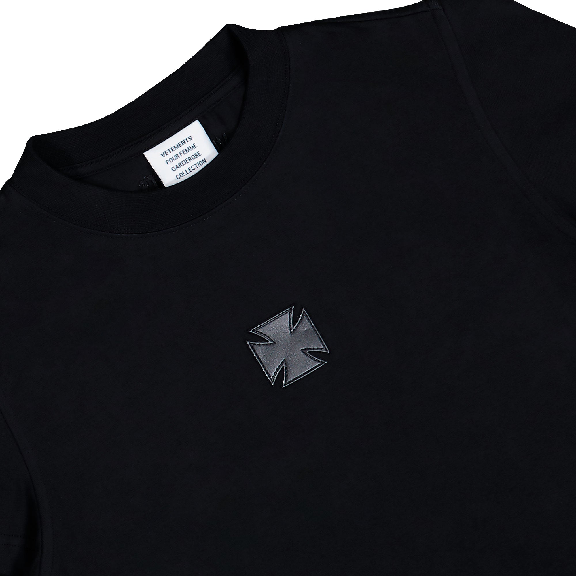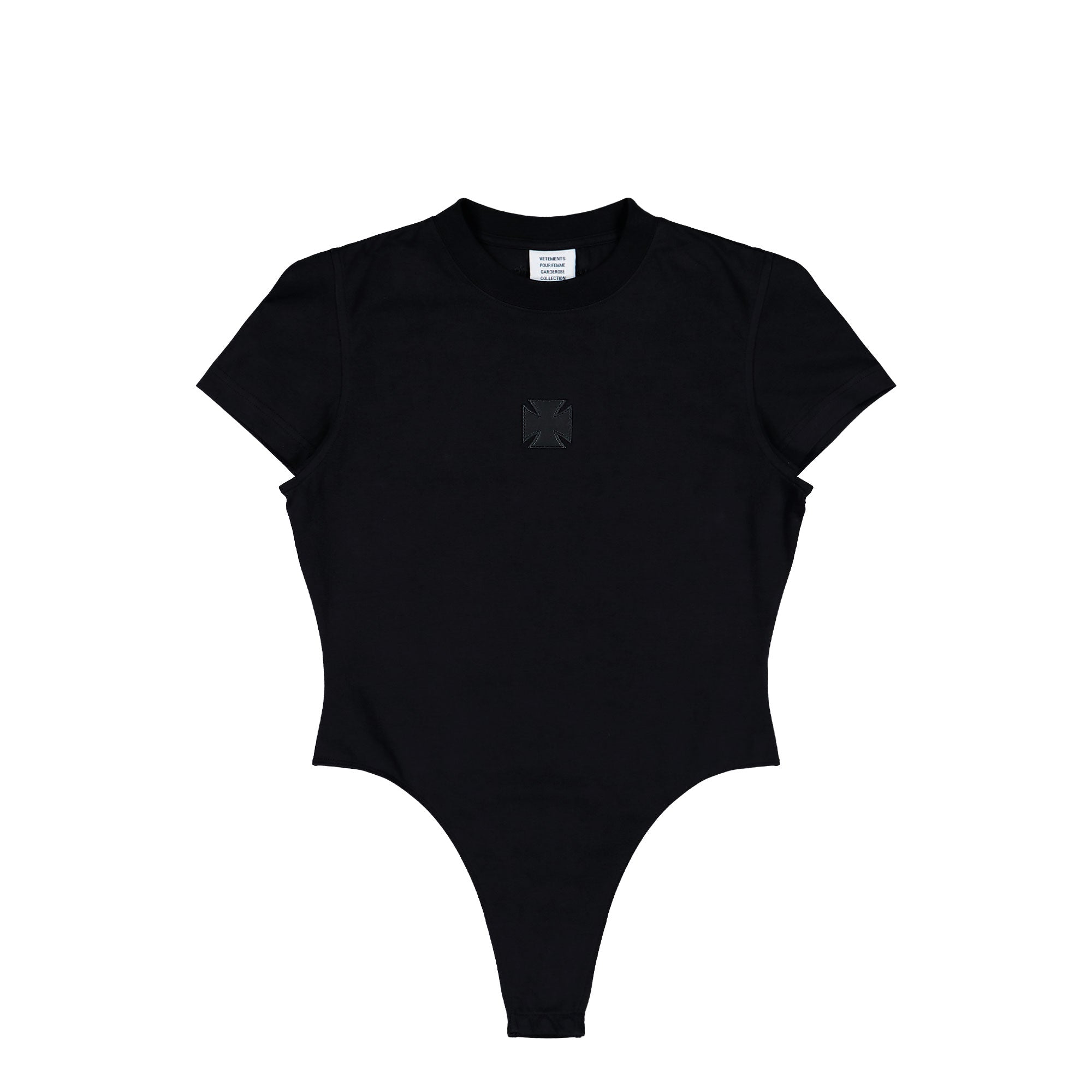 Das VETEMENTS Leather Cross T-Shirt Body (WE76BD537B) in Black überzeugt durch eine puristische Silhouette mit markantem Signature-Detail und verbindet zeitgenössische Ästhetik mit hochwertiger Verarbeitung. Gefertigt aus tiefschwarzem Stretch-Jersey präsentiert sich das Material in einem satten, gleichmäßigen Schwarzton mit matter Oberfläche, die je nach Lichteinfall eine dezente Tiefe entwickelt. Auf der Brust setzt das tonale Lederkreuz ein subtiles, leicht glänzendes Highlight und hebt sich durch seine strukturierte Oberfläche elegant vom soften Jersey ab. Der körpernahe Schnitt formt eine klare Linie, während der klassische Rundhalsausschnitt und die kurzen Ärmel das Design ausgewogen ergänzen. Im Schritt sorgt eine praktische Druckknopfleiste für komfortables An- und Ausziehen sowie optimalen Sitz. Auf der Rückseite unterstreicht ein dezentes VETEMENTS Limited Edition Branding den exklusiven Charakter. Dieses Designer Body T-Shirt in Schwarz lässt sich vielseitig kombinieren und bringt eine moderne, selbstbewusste Note in minimalistisch aufgebaute Looks.