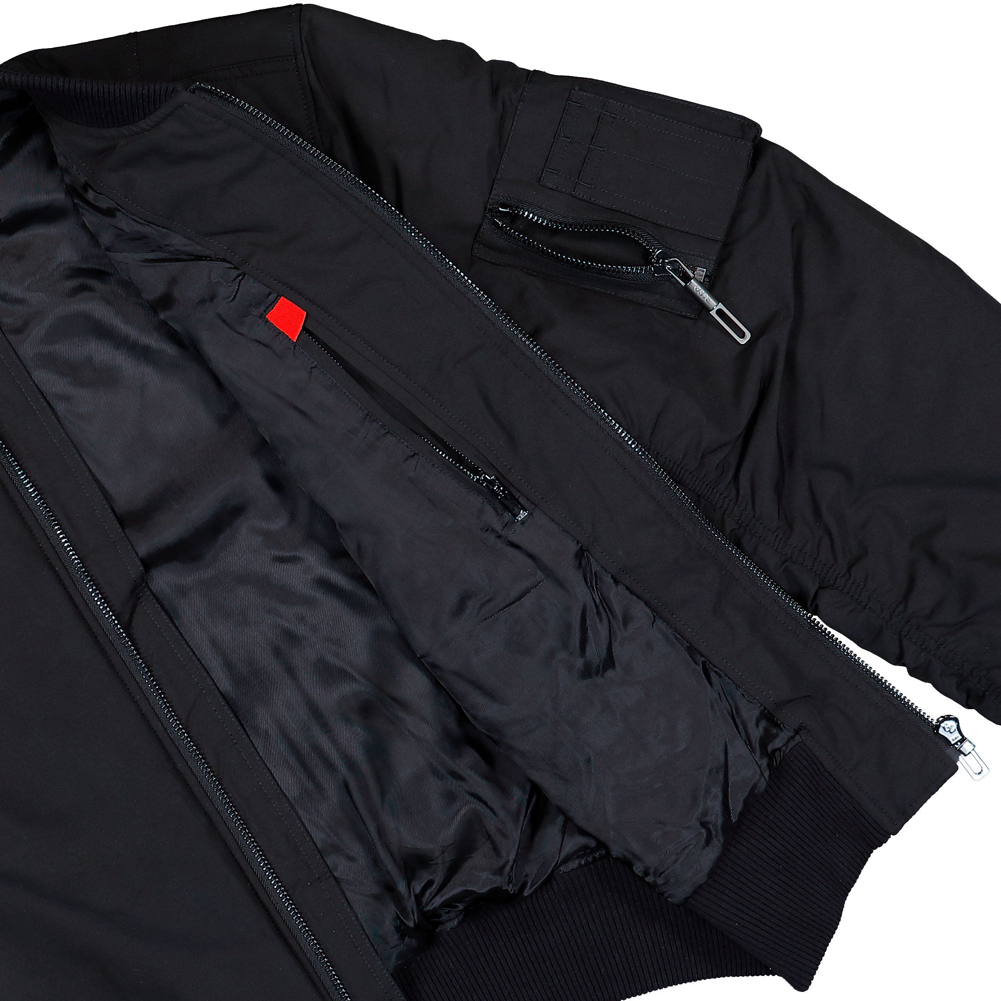 • Classic bomber silhouette with ribbed trims and zipper closure
