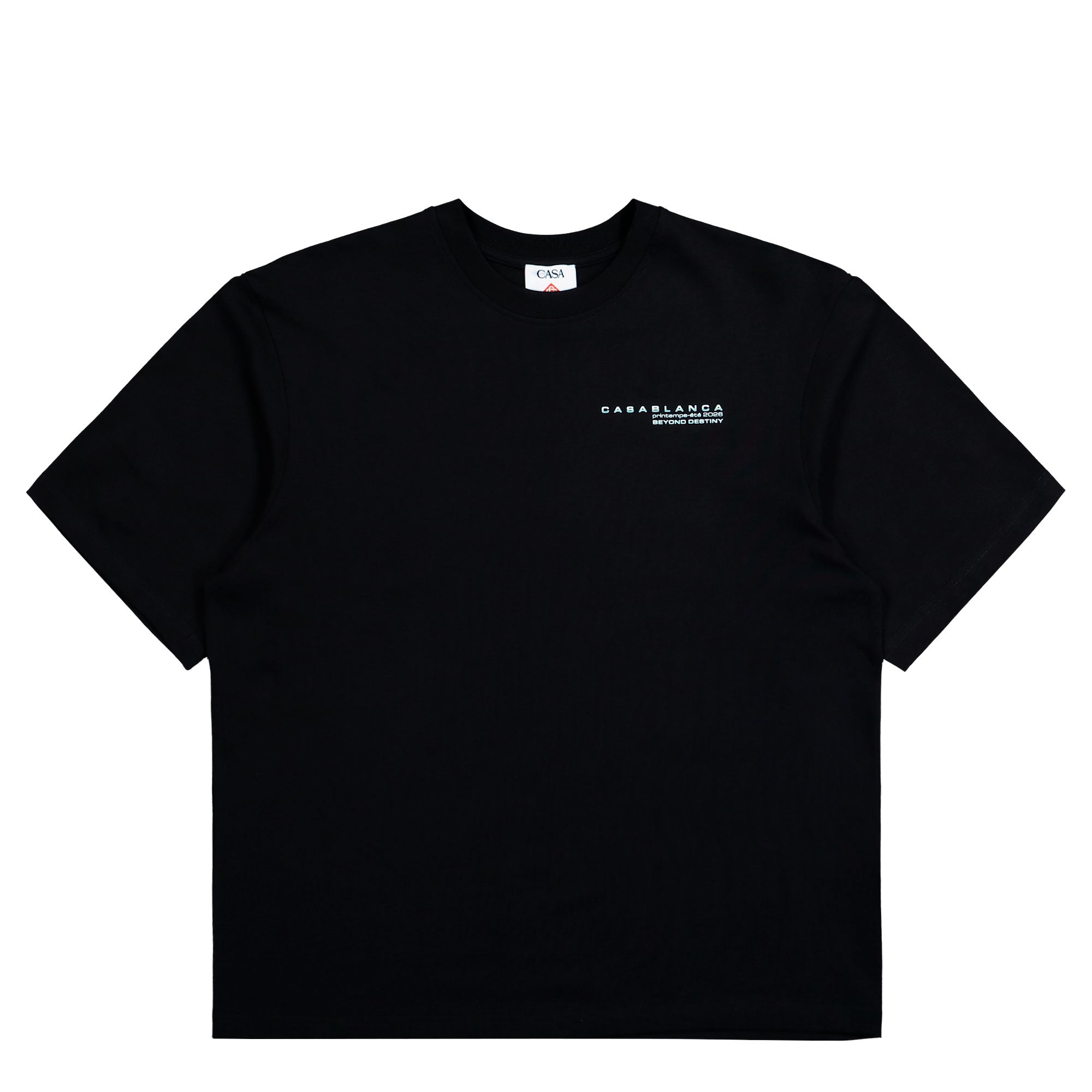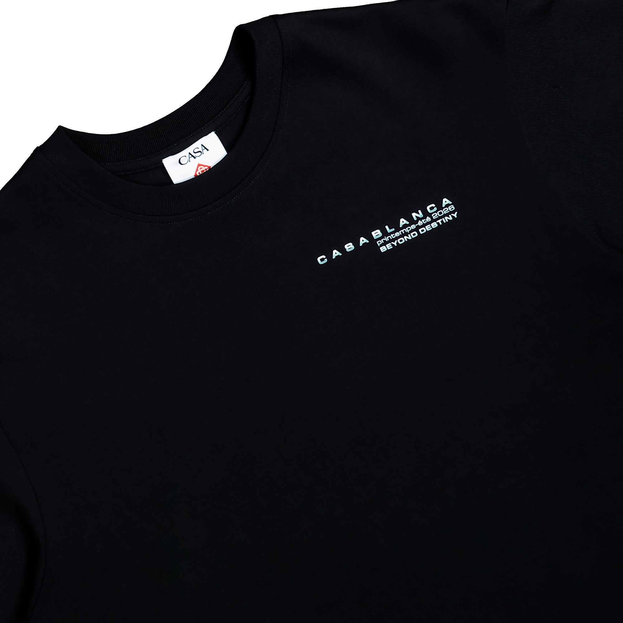 The Casablanca Glitch Orchid Oversized T-Shirt ( M-SP26-JTS-044-06 ) presents itself as a striking design piece defined by a clear visual contrast between minimalism and artistic expression. The deep black base appears rich and uniform, creating a calm foundation that allows the graphic elements to stand out with precision. On the front, a subtly placed Casablanca logo in cool green with a slight blue tint adds a refined accent, while the back is dominated by the large-scale glitch orchid artwork. The orchid features vibrant green and turquoise tones with smooth, airbrush-like transitions, surrounded by a soft glowing effect. At its center, contrasting red and pink hues create depth and a strong focal point. The oversized cut reinforces the contemporary character of the T-shirt, offering a relaxed and fluid silhouette. A classic crew neck balances the overall design, while the high-quality jersey fabric ensures a comfortable feel. The combination of precise typography, vivid color dynamics, and clean construction makes this T-shirt a distinctive piece within the current Casablanca collections.