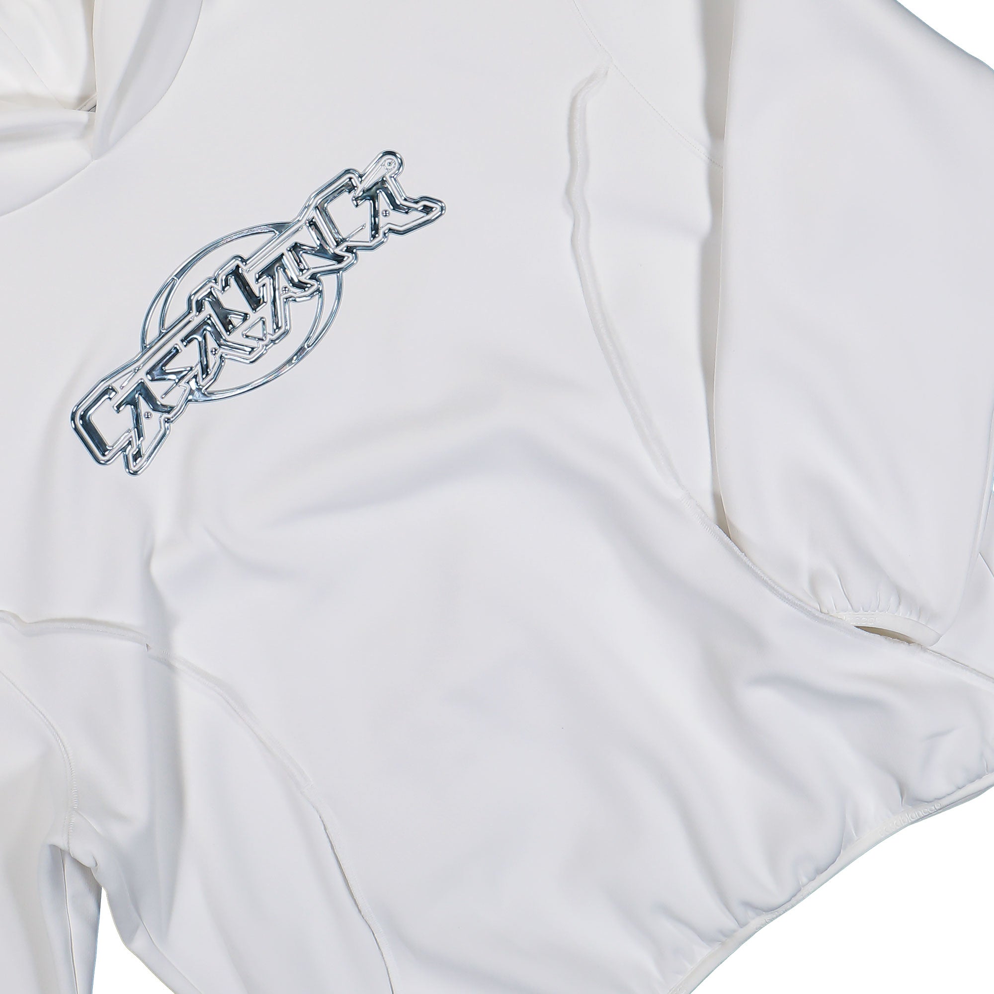 The oversized hoodie with panelled inserts features long sleeves and is adorned with the brand’s signature distorted metal logo. It includes a hood, detailed embroidered insert accents, a kangaroo pocket, and elasticized cuffs and hem for a secure, comfortable fit.