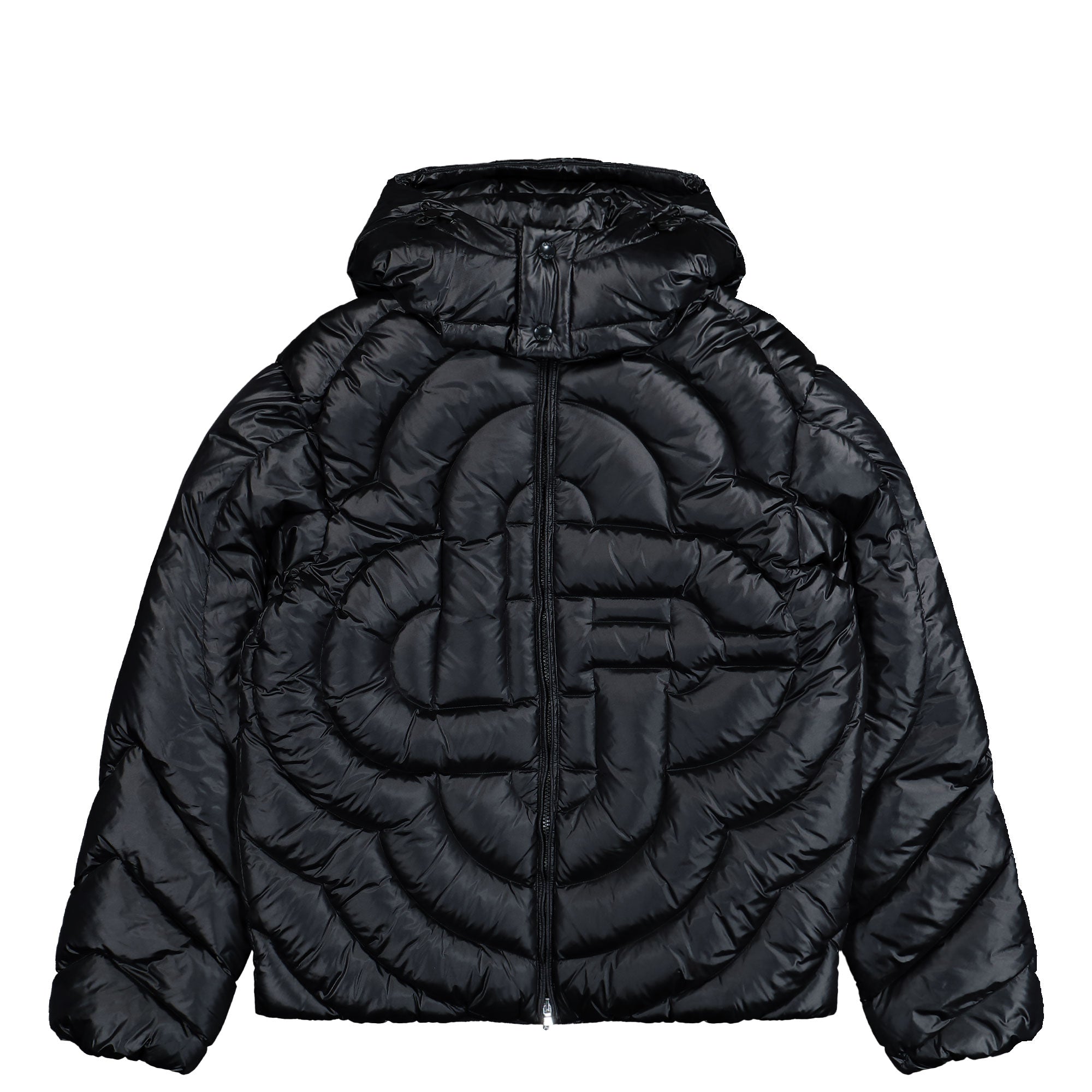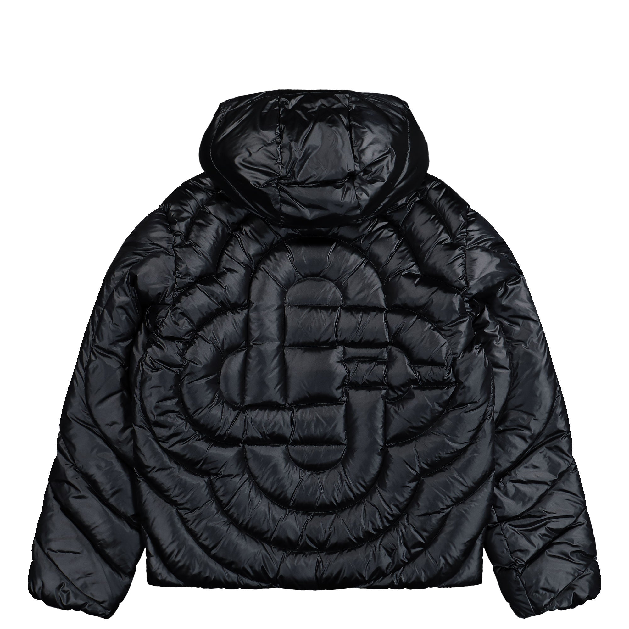 The Casablanca Quilted Puffer Jacket stands out as a precisely engineered winter jacket featuring a distinctive quilted structure and a refined, luxurious appearance. The subtly glossy outer fabric in deep black creates a clean and uniform look, while the voluminous down filling gives the jacket a pronounced three-dimensional shape. Circular quilting forms the iconic diamond monogram across the front and back, subtly contrasting with the base tone depending on the light. A generously cut detachable hood integrates seamlessly into the silhouette, reinforcing the functional design. The full-length zip closure is finished with a diamond-shaped logo pull and complemented by concealed snap buttons. In-seam side pockets, an additional sleeve pocket, and elastic adjustable tabs at the hem and hood provide comfort and adaptability. Branded tape details at the cuffs add a refined finishing touch. The Casablanca Quilted Puffer Jacket Black ( M-SP26-OT-227-02 ) combines strong visual presence with premium craftsmanship, making it ideal for elevated winter styling.