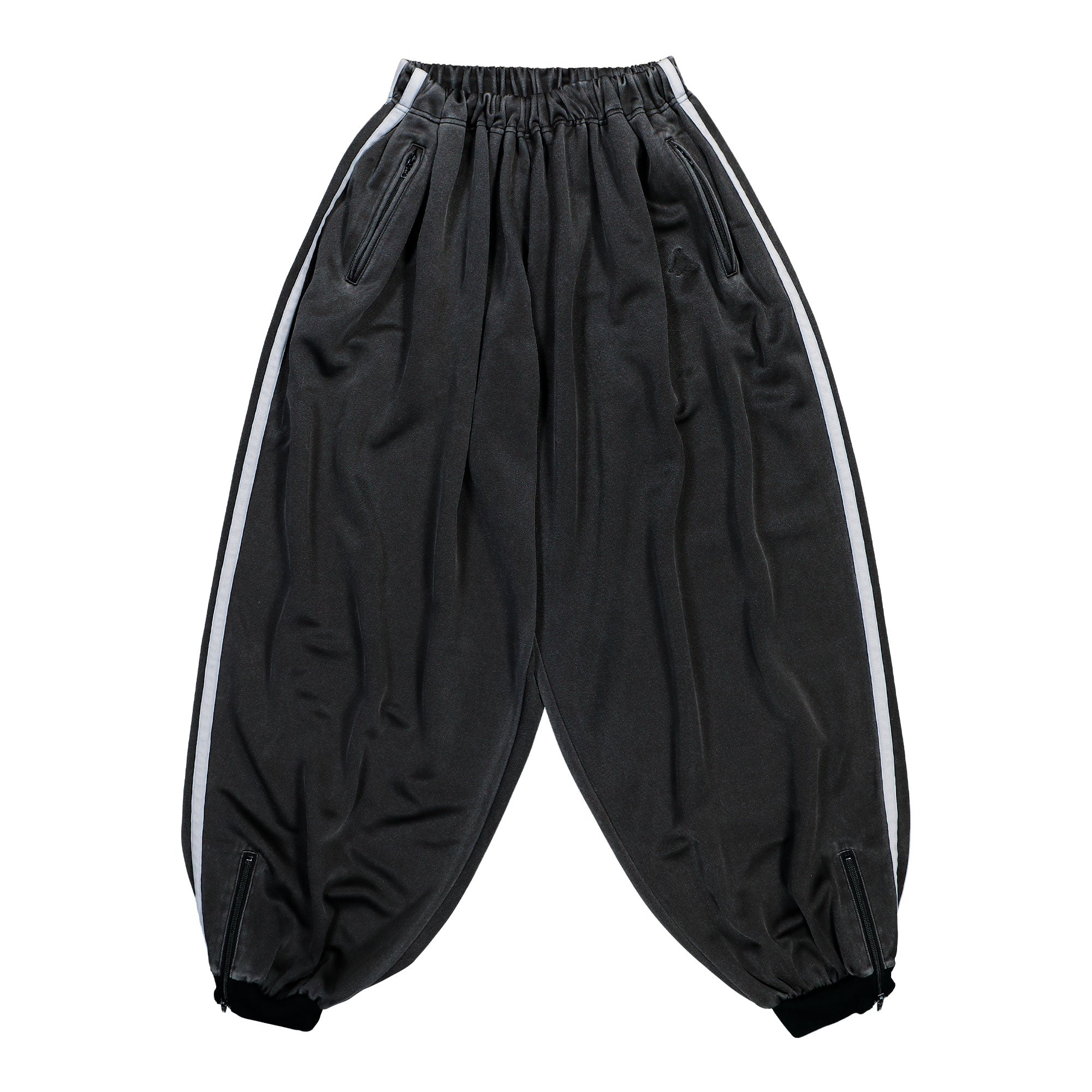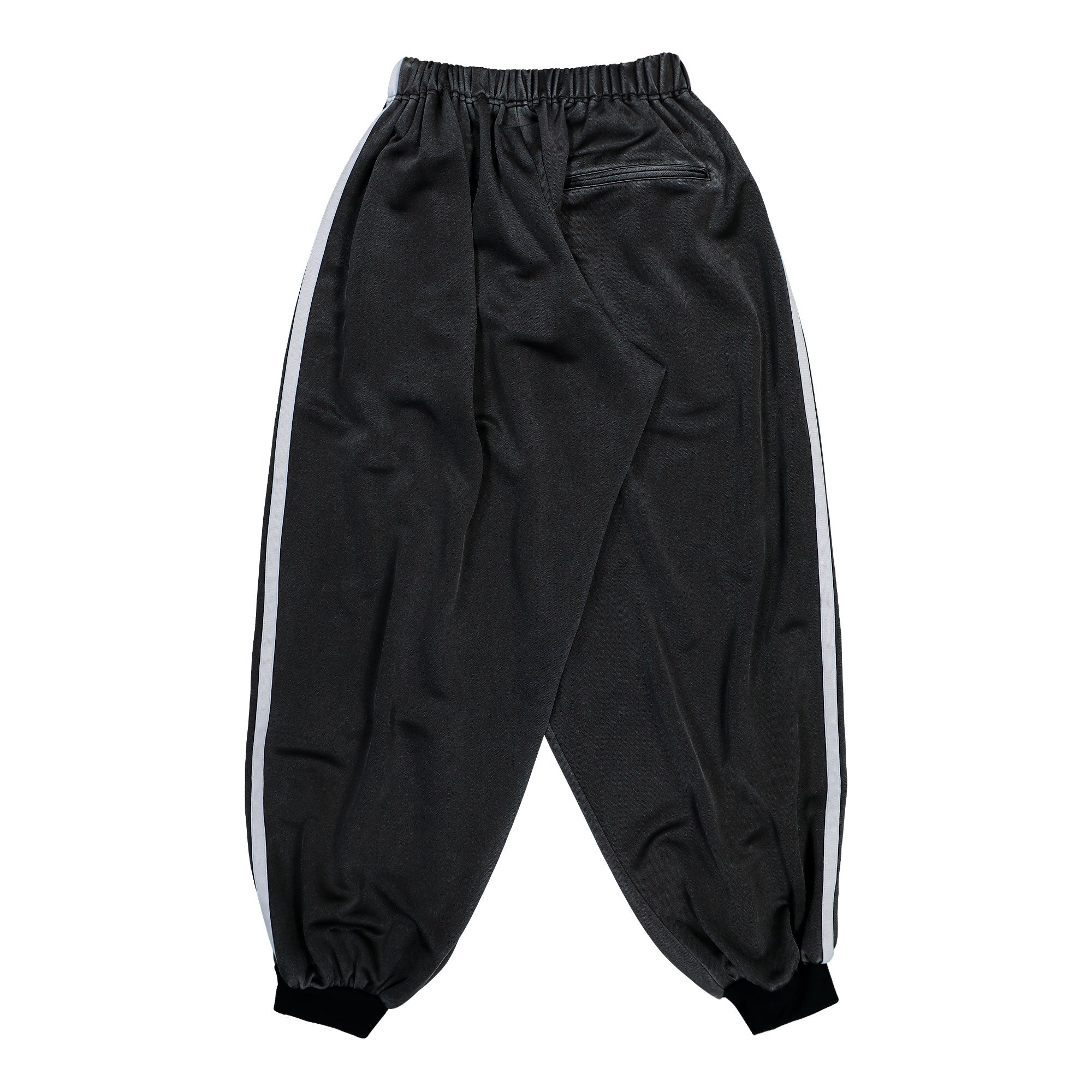 The Doublet Faded Black Track Pants stands out with a distinctive silhouette and a relaxed design that reflects the brand’s expressive identity. Its wide shape creates a soft flow, while the contrasting stripes running along the sides add structure and highlight the garment’s athletic influence. The subtly faded surface gives the fabric depth and emphasizes the unique aesthetic for which the label is known. Functional elements such as the discreet zip pockets and elastic cuffs at the ankles contribute to a balanced look that blends practicality with strong visual presence. This pair is released in a strictly limited edition of only ninety eight pieces and features an individually numbered label on the inside, reinforcing its exclusive character. The Doublet Faded Black Track Pants showcases a thoughtful combination of creativity, craftsmanship, and comfort, supported by the smooth movement of the fabric that enhances its modern and confident appearance. It is suited for those who appreciate distinctive fashion with a clear identity and are looking for a piece that delivers impact in everyday settings while remaining unmistakably original.