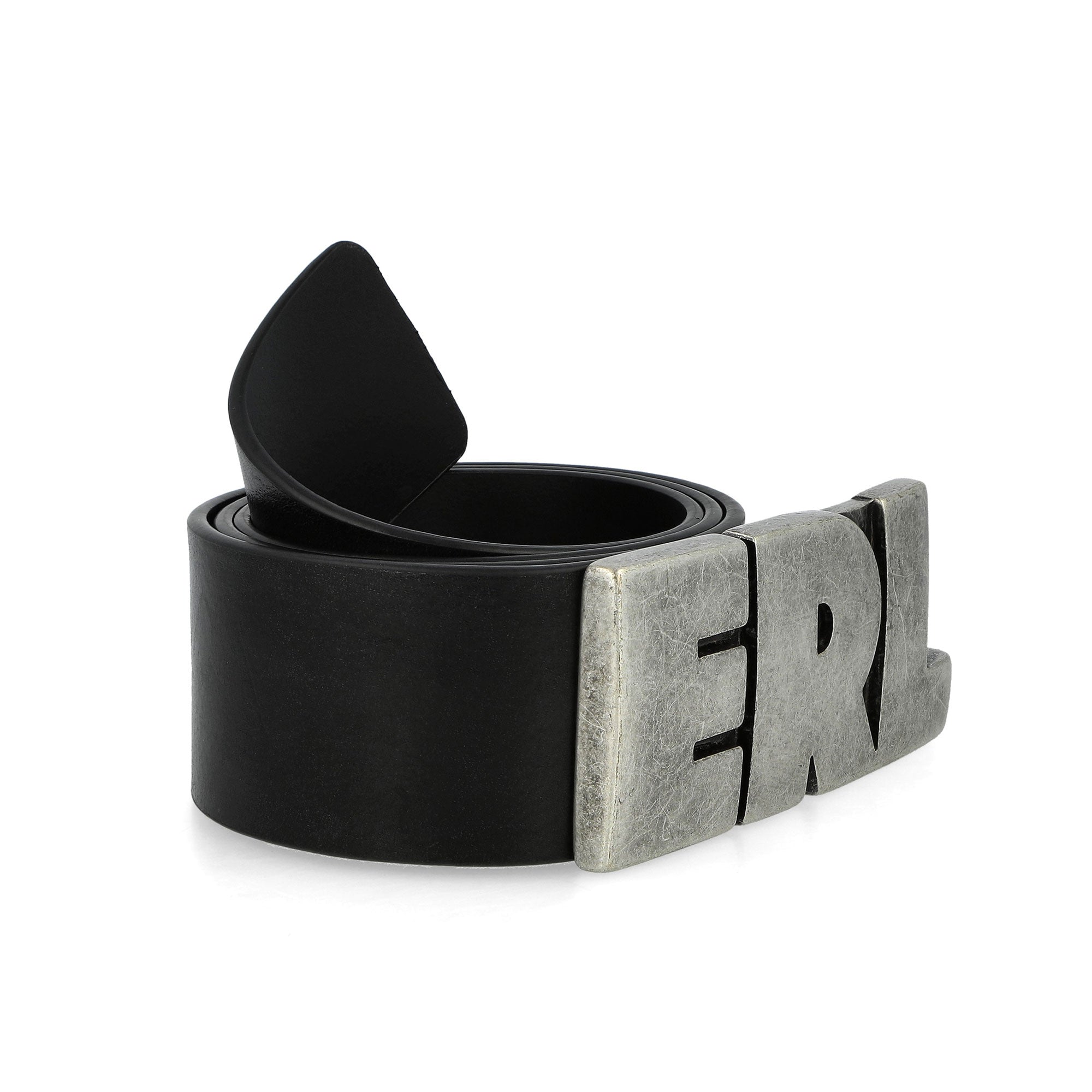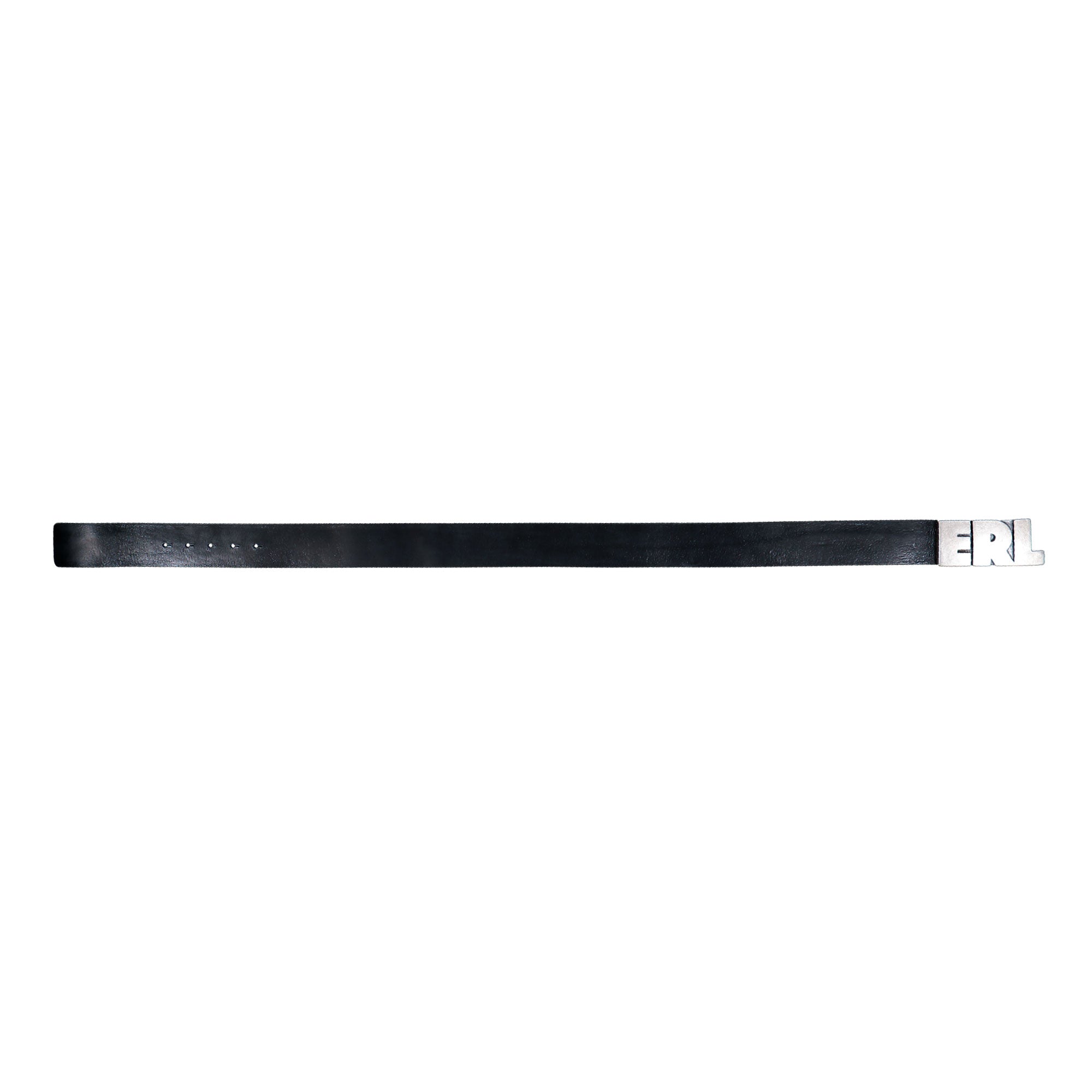 The leather belt with the ERL logo embodies refined minimalism through its high-quality workmanship. The belt, made from soft cowhide leather, features the brand's characteristic buckle, which serves as a subtle accessory. The leather is versatile and has a smooth finish. The fittings are in antique silver, giving the belt an authentic patina. As a basic wardrobe item, this belt effortlessly combines casual and elegant styles while maintaining the characteristic design language of ERL with understated elegance.