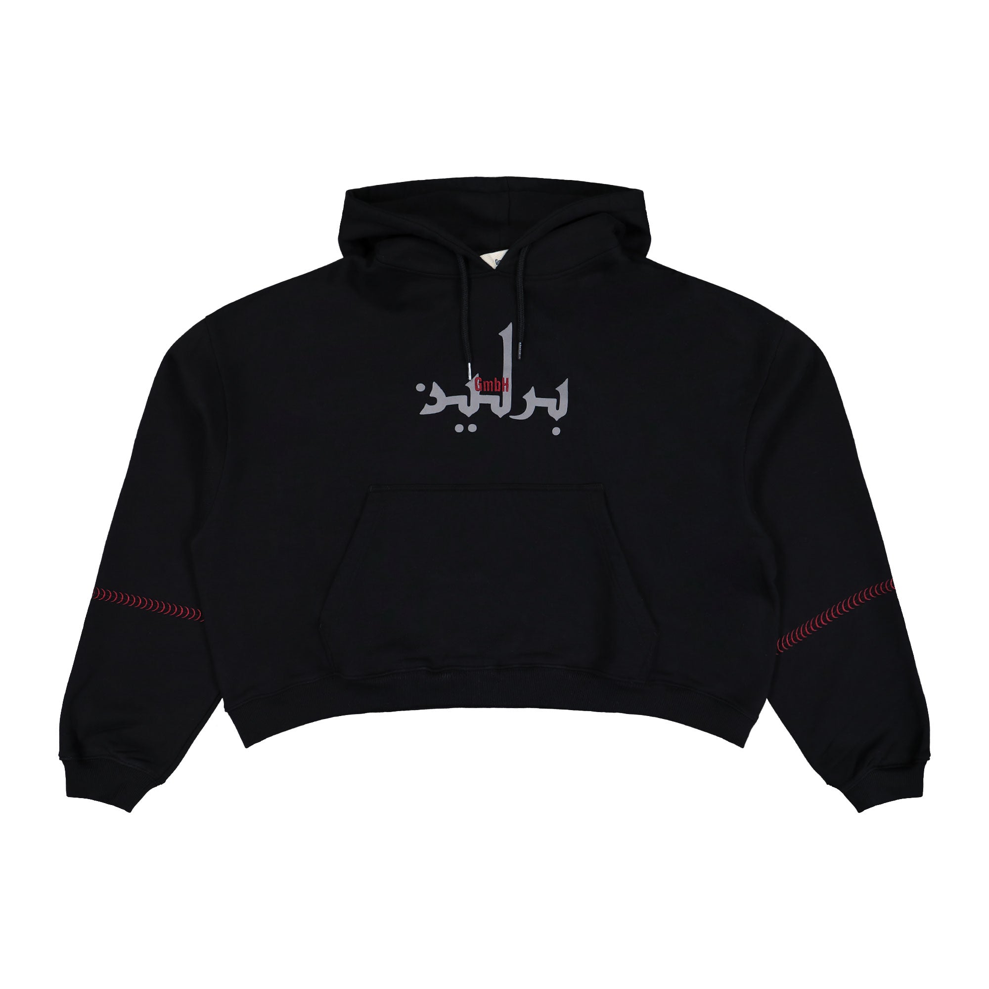 This cropped hoodie by Brand GmbH is crafted from soft cotton for comfortable wear. Its sleek black design features precise front logo embroidery, adding a subtle yet refined detail. Equipped with a hood and a kangaroo pocket, it combines style and functionality, perfect for layering or casual outings.