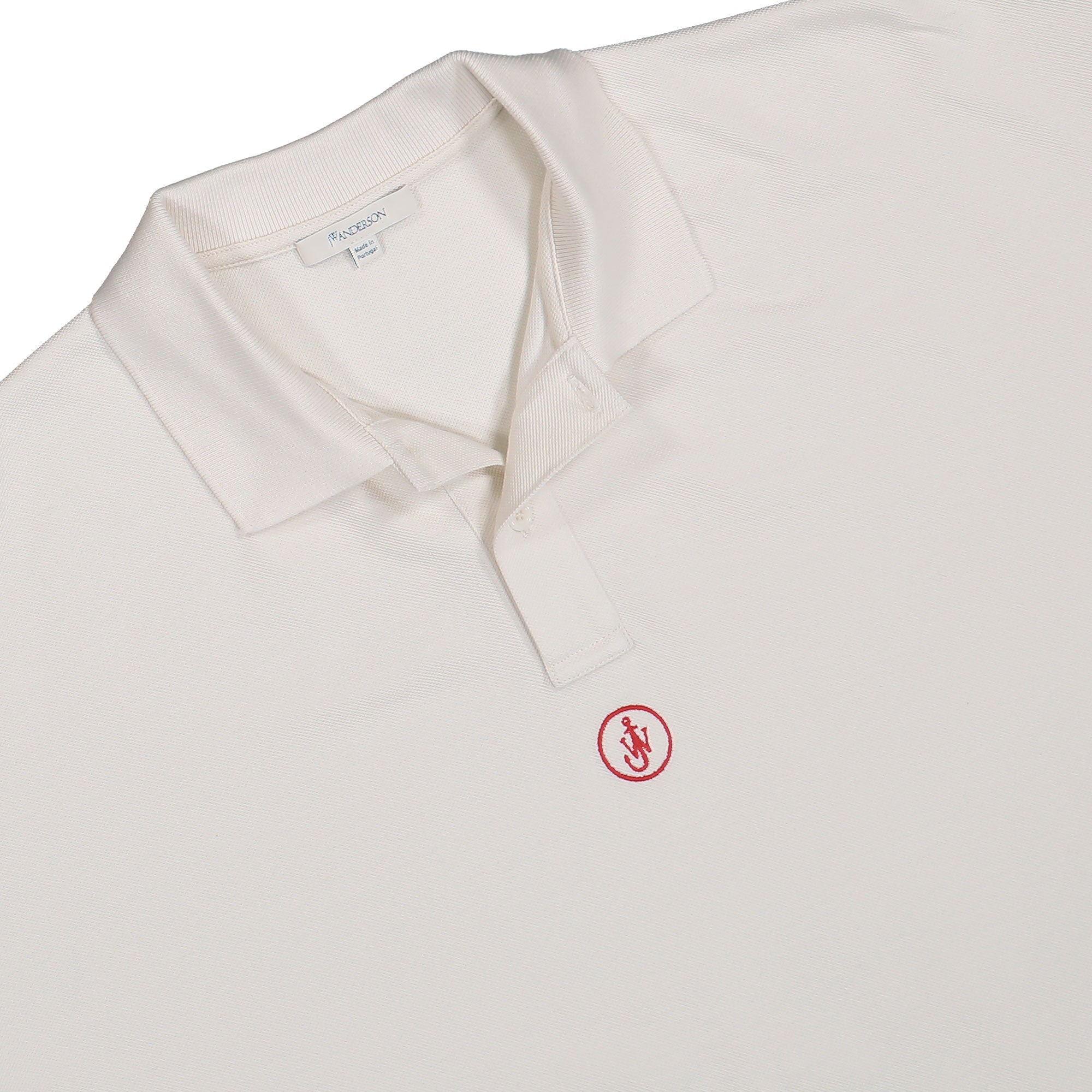 The JW Anderson Anchor Embroidery Polo comes in a refined off-white tone and features a bold anchor embroidery on the chest for a distinctive design statement. Its relaxed shape with dropped shoulders creates a modern silhouette, while the classic collar and button placket, combined with the fine piqué texture, add a premium touch. The subtle logo-emblem on the chest highlights the designer’s aesthetic. Thanks to the understated colour palette the shirt offers versatile styling options. Whether paired with chinos or jeans, this piece brings confident style to everyday wear and suits both upscale ensembles and contemporary casual outfits.