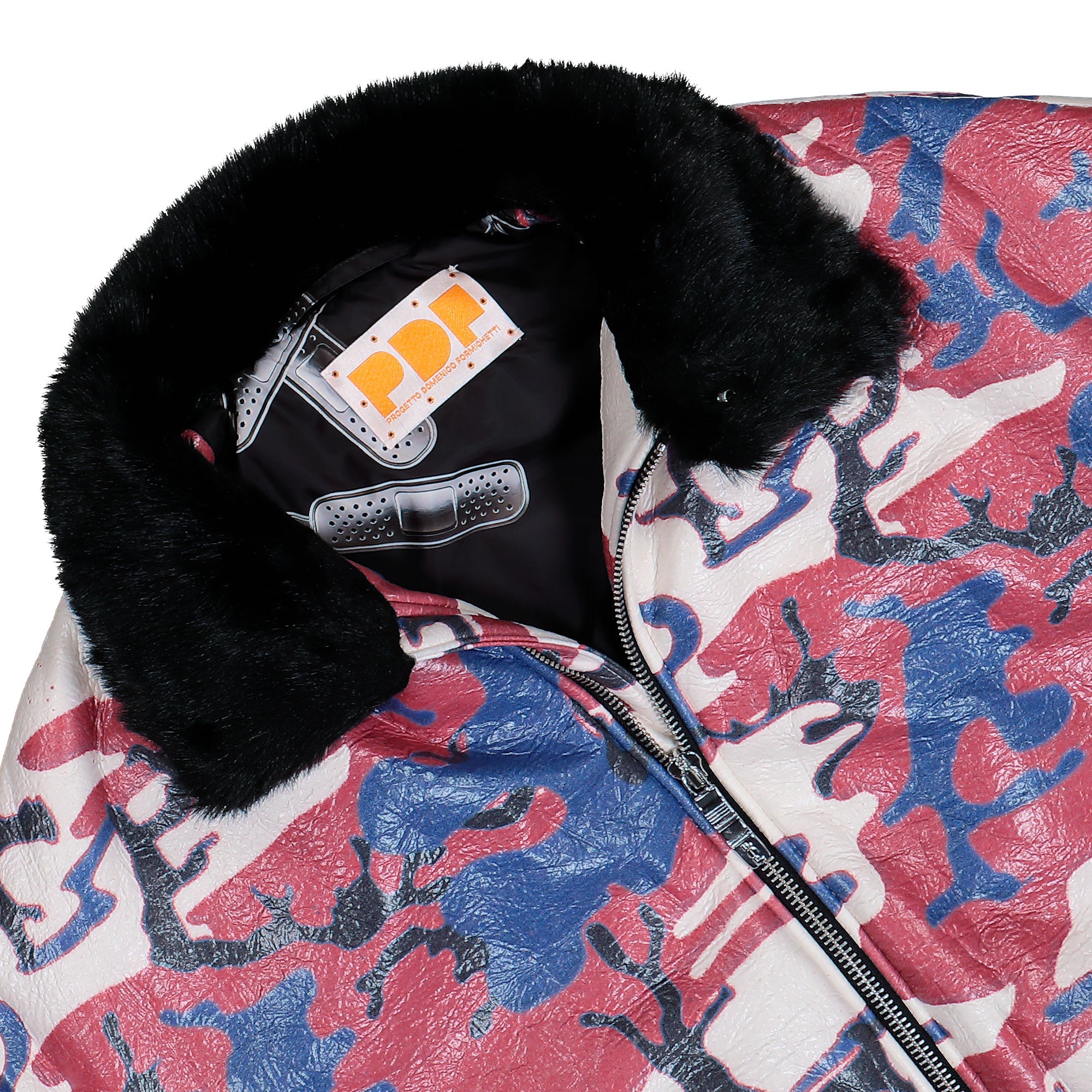 The Piuma Jacket represents PDF Channel's signature approach to contemporary outerwear-merging technical innovation with bold streetwear sensibilities. Crafted from premium cotton with a refined, structured silhouette, this statement piece features striking graphic elements and utility-inspired detailing. The Camo variant showcases printed fabric with a distinctive foil coating effect, delivering a subtly metallic finish that elevates the design. Built for impact, the Piuma delivers the oversized proportions and architectural construction that define the brand's aesthetic, making it an essential layer for those seeking functional style with unmistakable presence.