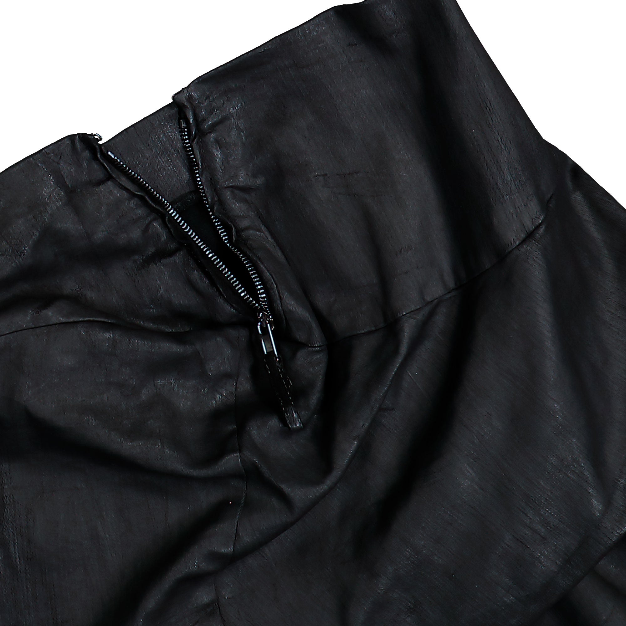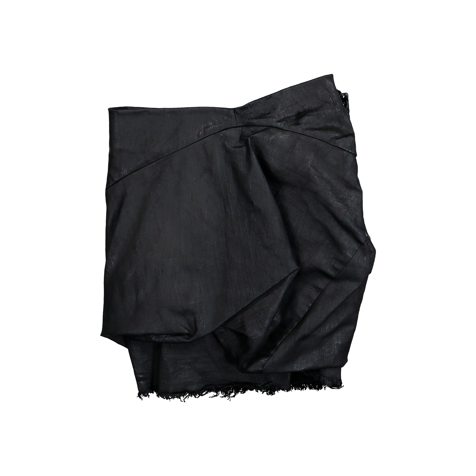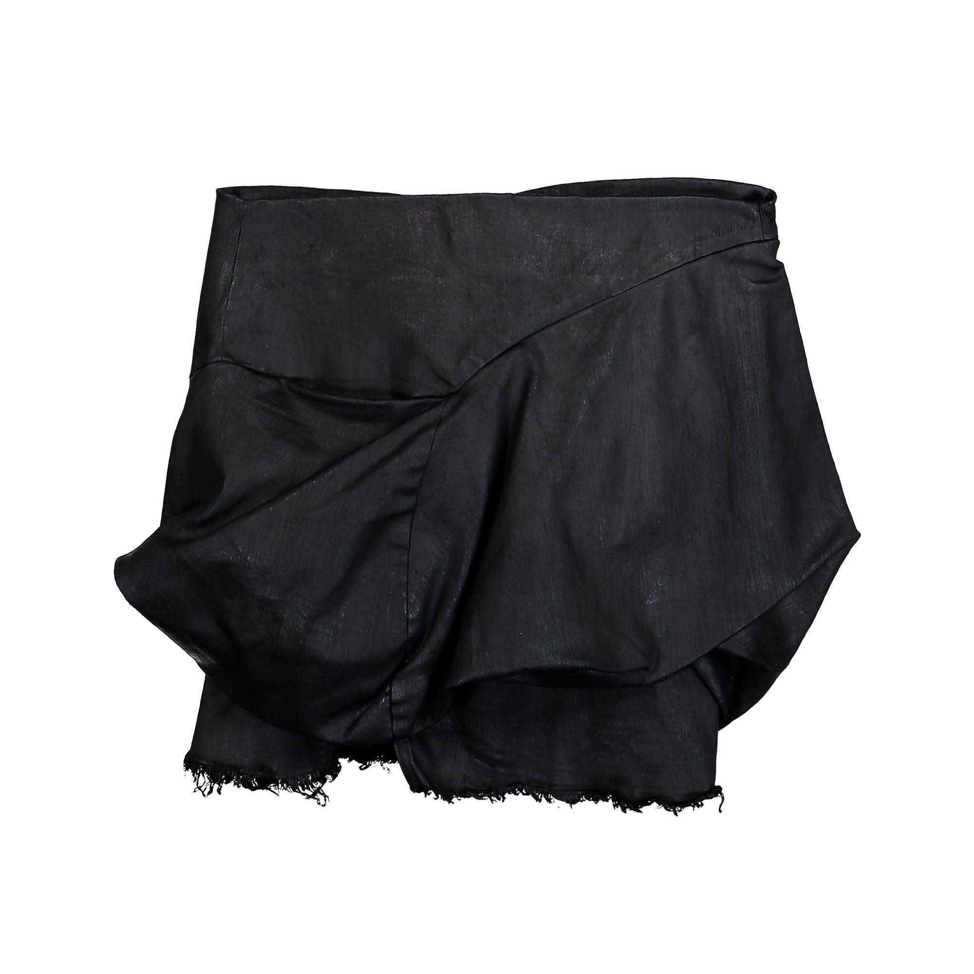 The Rick Owens Draped Mini (DS01F4343 SDBK 09) embodies a radical, architectural design language, merging avant-garde aesthetics with uncompromising materiality. The deep black surface appears immersed in dark onyx, revealing a subtle sheen and an irregular texture that gives the fabric a raw, almost organic character. Asymmetrical seams and generous draping create a sculptural silhouette that wraps dynamically around the hips, adding distinctive volume to the mini skirt. The intentionally uneven hem with delicate frayed edges enhances its deconstructed appeal, while the concealed zipper maintains a precise and clean line. Styled with minimal tops or structured jackets, this black designer piece unfolds its full impact and makes a confident statement within modern high-fashion looks. The monochrome colorway intensifies the depth of the material and highlights the refined construction for which Rick Owens is internationally renowned.