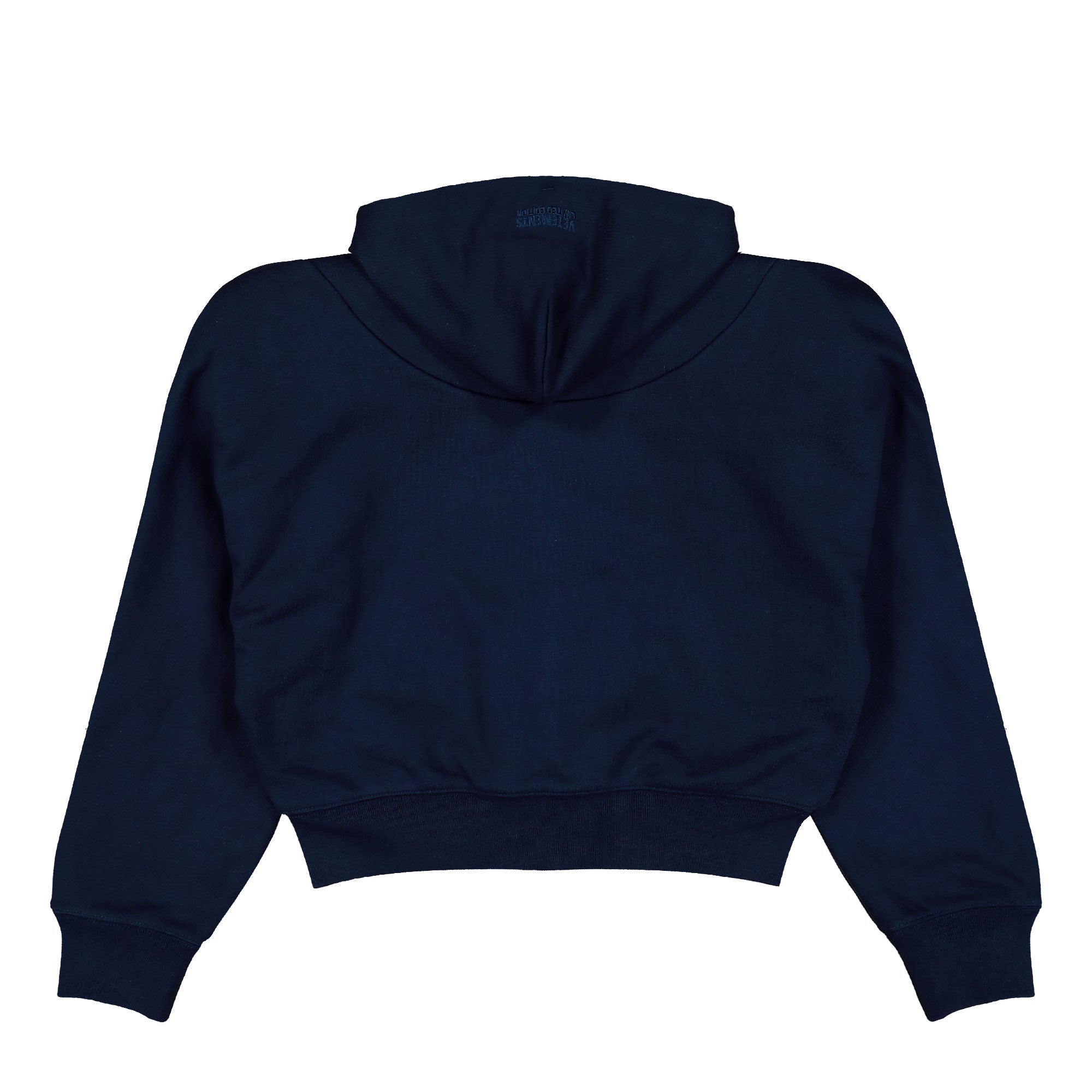 The VETEMENTS Alphabet Round Shoulder Zip-Up Hoodie in navy stands out as a distinctive designer piece with a striking silhouette and signature front print. The deep, rich navy tone evokes dark ocean blue and appears as a cool midnight shade depending on the light, giving the hoodie an elegant yet powerful presence. Crafted from high-quality cotton molleton, this zip-up hoodie offers a soft feel and structured fit that maintains its shape. The white alphabet print on the front creates a bold contrast and highlights the avant-garde identity of VETEMENTS. The rounded shoulder construction provides a unique fit with a slightly voluminous drape, while the full-length zipper allows for versatile styling options. A spacious hood, ribbed cuffs and hem, and the classic kangaroo pocket complete the functional design. This oversized hoodie combines comfort, premium quality, and unmistakable statement aesthetics in a modern interpretation of luxury casualwear.